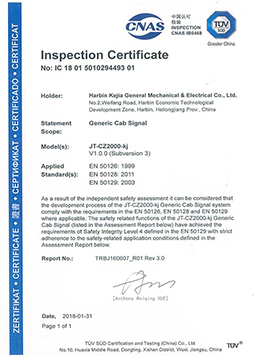 機(jī)車信號(hào)產(chǎn)品SIL4(安全完整性最高等級(jí))證書