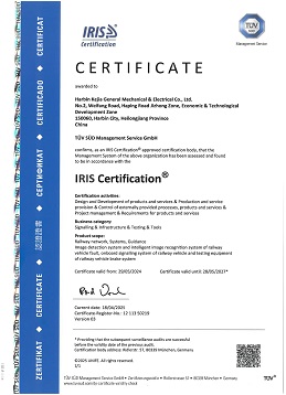 獲得IRIS國(guó)際鐵路行業(yè)標(biāo)準(zhǔn)認(rèn)證證書